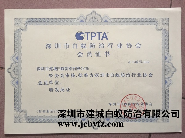 深圳白蟻防治協(xié)會(huì)會(huì)員證書